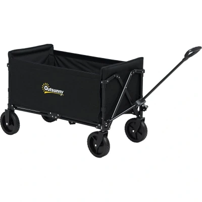 Outsunny 120L Folding Garden Trolley Cart, Outdoor Collapsible Wagon with Wheels and Adjustable Handle for Beach, Camping, Festival, Black