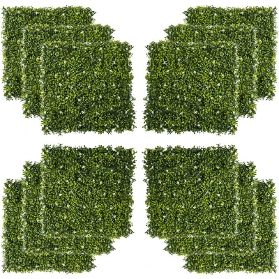 Outsunny 12PCS Artificial Boxwood Wall Panels 50cm x Grass Privacy Fence Screen Faux Hedge Greenery Backdrop Encrypted Milan with White Flowers for Home Garden Backyard Balcony