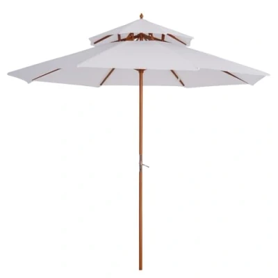 Outsunny 2.7 m Garden Parasol Umbrella, Double Tier Umbrellas Outdoor Sun Umbrella Sunshade Bamboo Ribs, Cream White