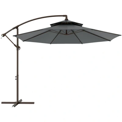 Outsunny 2.7m Garden Banana Parasol Cantilever Umbrella with Crank Handle, Double Tier Canopy and Cross Base for Outdoor, Hanging Sun Shade, Dark Grey