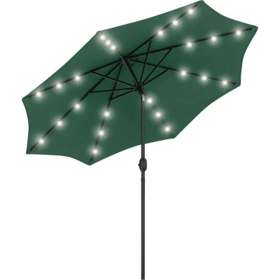 Outsunny 2.7m Patio Garden Umbrella Outdoor Parasol with Tilt Crank and 24 LEDs Lights (Green)