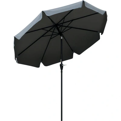 Outsunny 2.7m Patio Parasol Garden Umbrellas Outdoor Sun Shade Table Umbrella with Tilt, Crank, 8 Ribs, Ruffles, Grey
