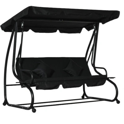 Outsunny 2 in 1 Garden Swing Chair for 3 Person w/ Adjustable Canopy Black