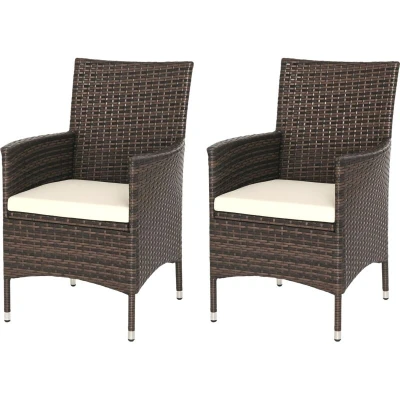 Outsunny 2 PC Outdoor Rattan Armchair Dining Chair Garden Patio Furniture w/Armrests Cushions Mixed Brown