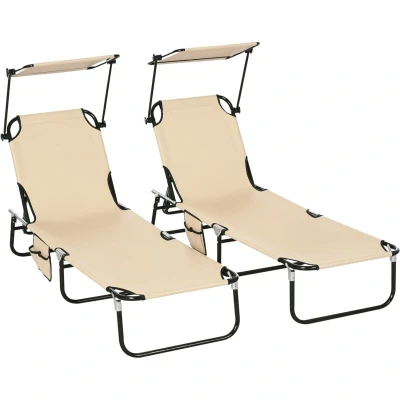 Outsunny 2 Piece Folding Sun Loungers with Adjustable Backrest, Tan Brown