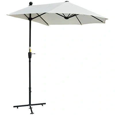 Outsunny 2m Half Parasol Market Umbrella Garden Balcony with Crank Handle, Cross Base, Double Sided Canopy, Cream White