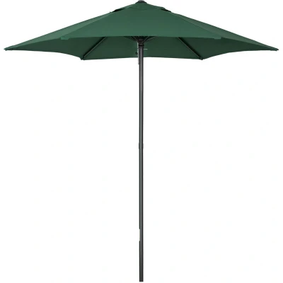 ManoManoGeneral description The Outsunny 2m Parasol Patio Umbrella is a stylish and classic addition to your garden or outdoor space. It not only enhances the beauty of your surroundings but also provides protective shade from the sun. The umbrella features a robust aluminum frame with six ribs for added support against wind, ensuring durability and stability. Technical specifications Colour: Green Material: Aluminum, Steel, Polyester Overall Size: Φ1.96m x 2.04m (Height) Umbrella Pole Diameter: Φ32mm Item Label: 84D-159GN Usage Easy push-open operation for quick setup. Locks into place securely with a metal pin. Portable and lightweight for convenient transport. Detachable for easy storage. Other information Base is not included; do not leave open in extreme weather.