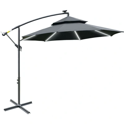 Outsunny 3(m) Cantilever Parasol Hanging Banana Umbrella w/ lights Black
