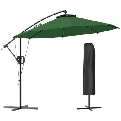 Outsunny 3(m) Garden Cantilever Parasol with Cover and Wind Protection Strap, Round Overhanging Umbrella Crank Handle Tilt, Banana Patio for Outdoor Sun Shade, UPF50+, Green