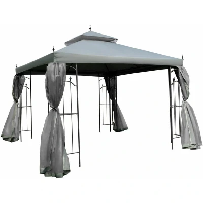 Outsunny 3(M) x3(M) Garden Gazebo Double Top Outdoor Canopy Patio Event Party Wedding Tent Backyard Sun Shade with Netting Grey