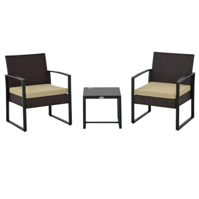 Transform your outdoor space with the elegant and comfortable Outsunny garden furniture set, expertly designed for relaxation and style. This three-piece set includes two charming armchairs and a sleek side table, perfect for intimate gatherings or leisurely afternoons in the sun.