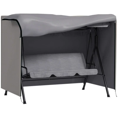 General description Protect your outdoor swing chairs with the Outsunny Garden Furniture Protector. This durable cover is designed to withstand various weather conditions, ensuring your furniture remains in excellent condition throughout the year. Technical specifications Colour: Light Grey Material: Oxford Fabric (Polyester) Overall Dimension: 205L x 124D x 164H cm Door Dimension: 154H x 205L cm Net Weight: 2.94 kg Flat Pack: Yes Item Label: 84B-446V00GY Usage Protects outdoor garden swing chairs against wind, rain, sunlight, and other weather conditions. Easy to clean and maintain. Other information Tightly stitched seams to prevent water, dirt, and residue from seeping in. Features a zipped front for easy access. Includes a drawstring and buckle to secure the cover in place.