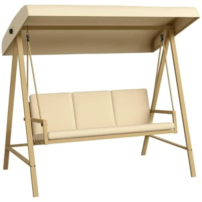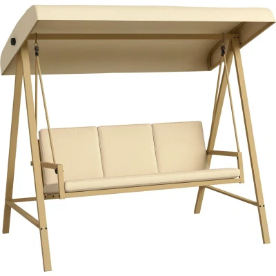 Outsunny 3 Seater Garden Swing Chair, Outdoor Hammock Bench with Adjustable Canopy, Removable Cushions and Steel Frame, Beige