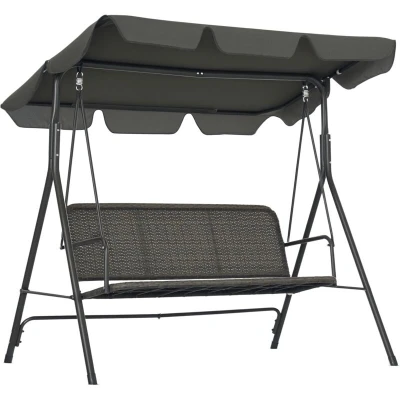 Outsunny 3 Seater Outdoor PE Rattan Swing Chair, Patio Wicker Hanging Bench with Steel Frame Stand & Adjustable Canopy, Grey