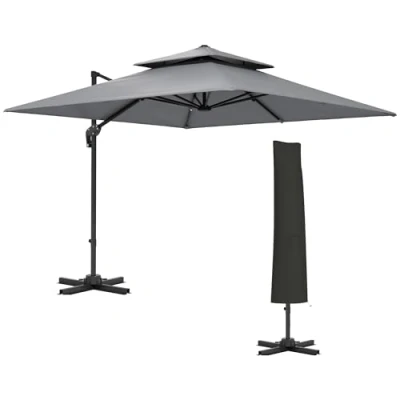 Outsunny 3 x 3(m) Cantilever Parasol with Aluminium Frame, Crank and Tilt, 360 Degree Rotation, Double Top Garden Umbrella Cover (Only Cross Base), Light Grey