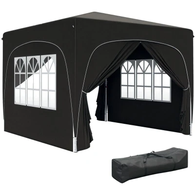 Outsunny 3 x 3(m) Pop Up Gazebo with Sides and Carry Bag, UPF50+, Height Adjustable Party Tent Instant Event Shelter for Garden, Outdoor, Patio, Black