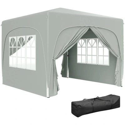 Outsunny 3 x 3(m) Pop Up Gazebo with Sides and Carry Bag, UPF50+, Height Adjustable Party Tent Instant Event Shelter for Garden, Outdoor, Patio, Light Grey