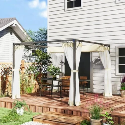 General description This Outsunny retractable pergola is a spacious outdoor shelter that allows you to adjust the canopy as desired, enabling you to enjoy sunshine or relax in the shade. The net curtains provide protection from insects, enhancing your outdoor experience. Technical specifications Colour: Khaki Materials: Aluminium, Metal, Polyester, Nylon Overall Dimensions: 297L x 297W x 225H cm Column Spacing: 277 x 277 cm Column Size: 8L x 8W cm Windproof Level: 4-5 (with ground stakes), 5-6 (with expansion screws) Item Label: 84C-482V01KK Other information Not recommended for use in extreme weather conditions; retract the canopy in harsh rainy or snowy weather. Assembly required.