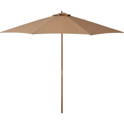 Outsunny 3m Fir Wooden Garden Parasol Sun Shade Outdoor Umbrella Canopy Khaki