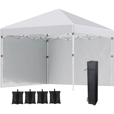 Outsunny 3x3 (M) Pop Up Gazebo Party Tent w/ 2 Sidewalls, Weight Bags White