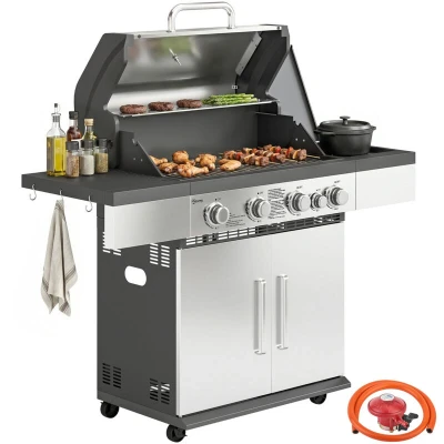 Outsunny 4+1 Burner Gas BBQ Grill, Portable Barbecue Grill