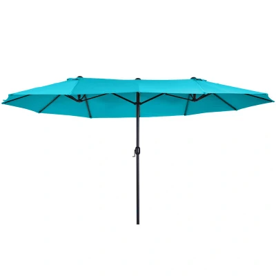ManoManoGeneral description Practical and stylish, there's no better way to enjoy the sun than with this Outsunny double parasol. In a bright light blue color, this garden shelter covers a 4.6M diameter, ensuring you and your friends are completely covered all day long. Technical specifications Colour: Blue Material: Metal, Polyester Fabric Product Dimensions: 455L x 265W x 238H cm Pole Size: Φ48 x 1.0T mm Other information Note: Do not use umbrella during extreme weather (strong wind, heavy rain, snow).