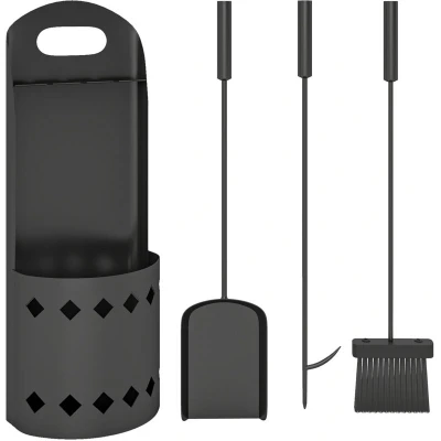 General description Warm up your hearth with the Outsunny fireplace companion set, a charming addition to any indoor or outdoor setting. This four-piece set includes a broom, a shovel, a poker, and a bucket, all crafted in metal with a sleek black powder coating. Enjoy effortless maintenance and a timeless look with these essential fireplace accessories. Technical specifications Colour: Black Material: Metal Overall Dimensions: 20W x 14D x 57H cm Poker Dimensions: 53.5L x 7.5W cm Shovel Dimensions: 54.5L x 11W cm Broom Dimensions: 54.5L x 12W cm Item Label: 842-418V00BK Usage Suitable for both indoor fireplaces and outdoor fire pits. No assembly required, making it easy to use right out of the box.
