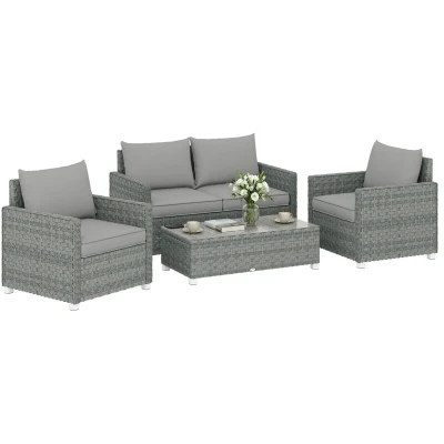 Outsunny 4 Seater Rattan Garden Furniture Set with Cushions, Grey