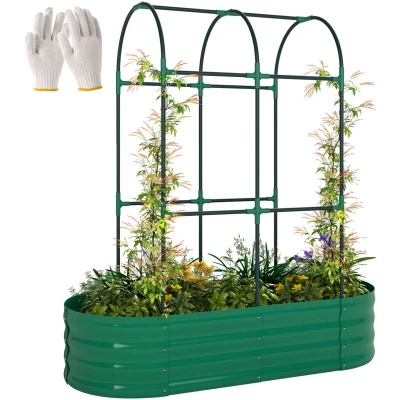 Outsunny 4 x 2 4.6ft Galvanised Raised Garden Bed with Trellis, Green