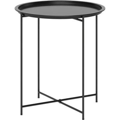 Outsunny 46cm Round Small Garden Table with Removable Tray and Folding Legs, Metal Side Table, Indoor Outdoor Coffee End for Patio, Balcony, Porch, Black