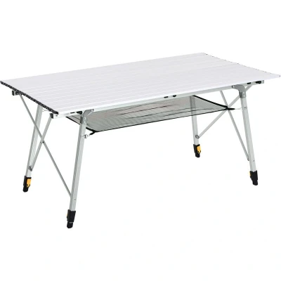 Outsunny 4FT Folding Aluminium Picnic Table Portable Camping BBQ Roll Up Top Mesh Layer Rack with Carrying Bag