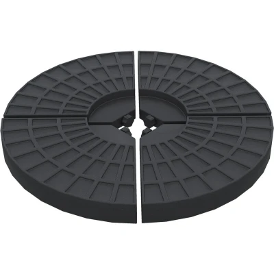 General description Ensure your parasol is always held firmly in place with parasol weights from Outsunny. Made from strong HDPE plastic, these weights consist of four pieces that fit together easily, providing stability for your sunshade in various settings such as gardens, porches, bars, restaurants, and cafes. Technical specifications Item Name: Umbrella Weight Base Brand Name: Outsunny Material: HDPE Colour: Black Weight Base Size (each piece): 48L x 48W x 8H cm Each Plate Capacity: 13L Net Weight: 6.3 kg Flat Pack: YES Weight Capacity: Each piece holds up to 13 kg of water weight, 15 kg of sand weight, or 17.5 kg of a sand-water mixture Usage These parasol bases can be easily cleaned and are light enough to carry when empty, allowing you to choose your perfect sunshade spot with ease. They hold a parasol firmly and securely in place in all weather conditions, making them ideal for various outdoor settings.