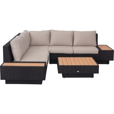 For an understatedly stylish small garden furniture set, look to this luxurious garden sofa set from Outsunny. Featuring two loveseats, a corner seat and a coffee table, you can arrange this set however you wish, making it completely flexible in how you want it to look. Built from PE rattan with a steel frame for support, each piece of the outdoor furniture has been built to last to provide you years of use and the thick padded cushions ensure you'll be relaxing comfortably for hours on end. Specifications: ● Colour: Black, beige ● Material: Galvanized Metal, PE rattan, Polyester ● Two Seater Sofa Size: 165W x 84D x 73Hcm, seat: 125W x 68D x 30Hcm ● Corner Sofa Size: 84W x 84D x 73Hcm, seat: 68W x 68Dcm ● Table Size: 84W x 84D x 30Hcm ● Weight Capacity: 80kg (Table). 160kg (Corner sofa). 320kg (Loveseat) ● Item Label: 860-075BKJust so you know: this item ships and arrives in separate boxes. Delivery times may vary with each box. Box quantity: 2 Features: ● Four-piece sofa set,