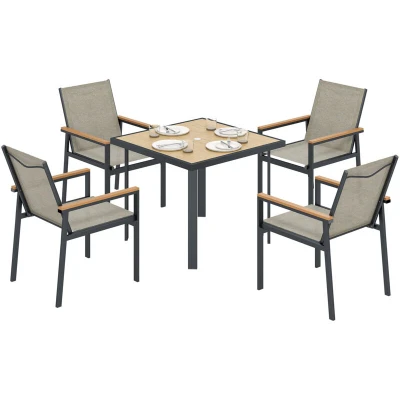 Outsunny 5 Piece Garden Dining Set, Outdoor Table and 4 Chairs, Khaki