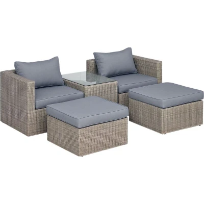Experience leisurely afternoons with the stunning Outsunny five-piece conservatory furniture set, designed to elevate your outdoor living space. This versatile set includes two corner chairs, two footstools, and a tall coffee table, creating the perfect gathering spot for family and friends. Ideal for gardens, balconies, or patio areas, this stylish furniture set blends comfort and functionality seamlessly.