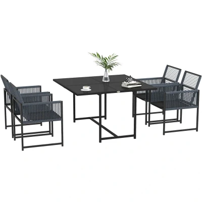 Outsunny 5 Pieces Garden Dining Set, Outdoor Patio Cube 4 Seater Table and Chairs with Foldable Backrest, Tempered Glass Top, Handwoven Rope for Poolside, Space Saving, Dark Grey