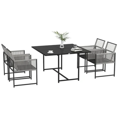 Outsunny 5 Pieces Garden Dining Set, Outdoor Patio Cube 4 Seater Table and Chairs with Foldable Backrest, Tempered Glass Top, Handwoven Rope for Poolside, Space Saving, Light Grey
