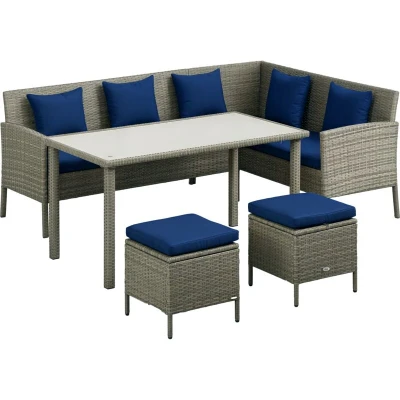 Outsunny 5Pcs Rattan Dining Corner Sofa Set, Garden Furniture Dark Blue