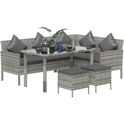 Outsunny 5Pcs Rattan Dining Corner Sofa Set, Garden Furniture Dark Grey