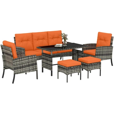 Outsunny 6 Pieces Rattan Garden Furniture Sofa Set with Cushions Orange