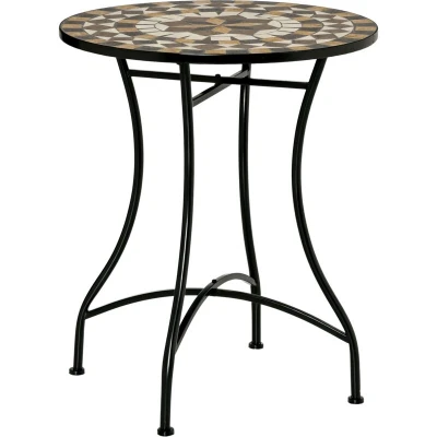AmazonMosaic tabletop: An classic and elegant outdoor table - the vibrant mosaic design brings character into outdoor spaces. Versatile: Not just a patio table, use this indoors, as a plant stand and beyond. Metal frame: Powder coated for extra strength, this round table is a tough piece, resistant to weathering and corrosion. Curved legs and bottom crossbar adds stability. Easy to maintain: Keep your table clean with minimal effort - simply wipe with a damp cloth. Easy to keep looking fresh and beautiful. Dimensions: 71H x Φ60 cm. Maximum load 50 kg. Assembly required.
