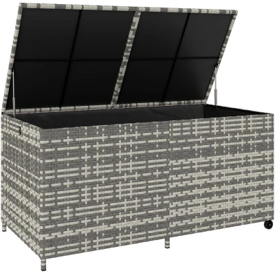 ManoManoTidy up your outdoor space with the Outsunny rattan garden storage box! Its generous interior keeps garden tools and outdoor essentials neatly organised, so you can spend less time searching and more time enjoying your patio, balcony, or garden. Built-in wheels and handles make it easy to move wherever you need, while the stable design allows you to relax knowing your items are safe and easy to access. The stylish outside storage box also adds a charming touch to your outdoor life. Specifications: ● Colour: Mixed Grey ● Material: PE Rattan, Steel ● Overall Dimensions: 150L x 75W x 74H cm ● Inner Size: 144L x 71W x 60H cm ● Weight Capacity: 100 kg ● Item Label: 865-044V00GG Features: ● Extra Large 650L capacity provides plenty of room for outdoor tools and accessories ● Zippered liner protects items from dust and water while keeping them easy to access ● Gas-assisted lid opens and closes smoothly, preventing hand pinches and reducing strain ● Two wheels and built-in handles make this