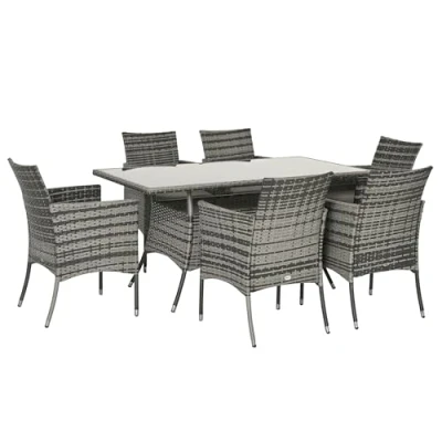 ManoManoGeneral description Outsunny 7pc Rattan Garden Furniture Dining Set is a stylish and functional addition to your outdoor space. This wicker patio set is designed for comfort and durability, making it perfect for dining and entertaining in your garden or conservatory. Other information