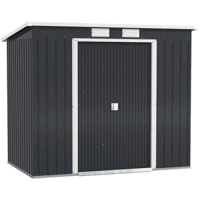Outsunny 7 x 4ft Lean to Garden Shed with Foundation Kit, Double Door and Vents, Outdoor Metal Storage for Equipment Tools, Dark Grey