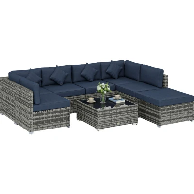 Outsunny 8 Pieces Patio Rattan Sofa Set Garden Furniture for Outdoor Dark Blue