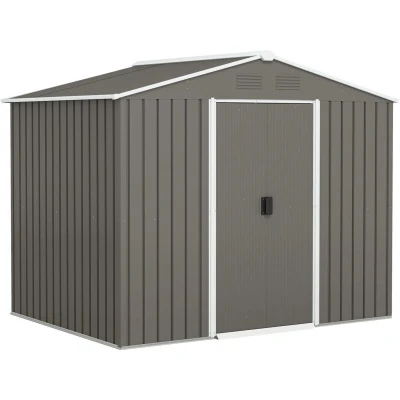 Outsunny 8 x 6ft Outdoor Garden Storage Shed with Double Sliding Door Light Grey