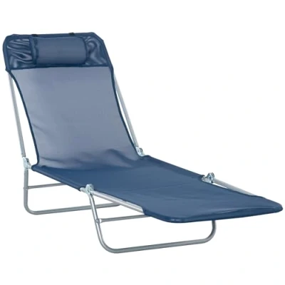 Outsunny Adjustable Sun Bed Garden Lounger Recliner Relaxing Camping Blue