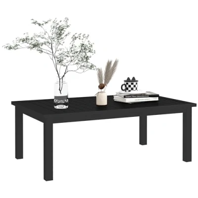 This Outsunny coffee table is a simple piece, suitable for all outdoor spaces. Made from aluminium, this is a tough piece suitable for use all year round in a simple black finish for versatility. Complete with a slatted tabletop to prevent annoying and damaging water build-up. Specifications: ● Colour: Black ● Material: Aluminium ● Overall Dimension: 100W x 60D x 37H cm ● Weight Capacity: 50kg ● Item Label: 84G-324V00BK Features: ● 100cm x 60cm: a spacious holding spot for items next to you ● Aluminium structure is tough, suitable for outdoor use. Keep protected with furniture cover ● Slatted top prevents water building up ● Foot pads to gently protect floor from scratches ● Maximum 50kg, assembly required