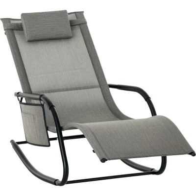 Outsunny Breathable Mesh Rocking Chair Outdoor Recliner w/ Headrest Dark Grey