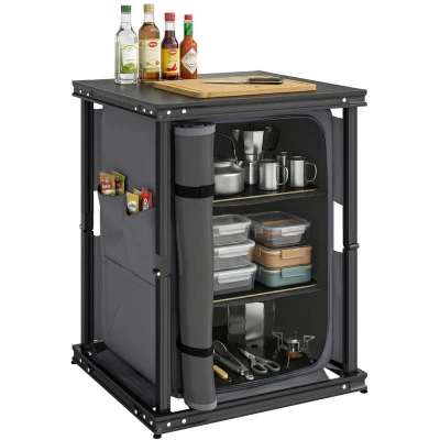 Outsunny Camping Cupboards, Folding Kitchen Table with 3 Tier
